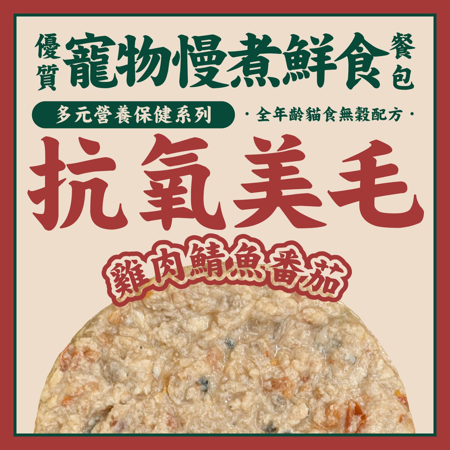 CFS2 抗氧美毛雞肉鯖魚番茄餐|多元營養保健全年齡貓食無穀配方|寵物慢煮鮮食餐包|香港製造