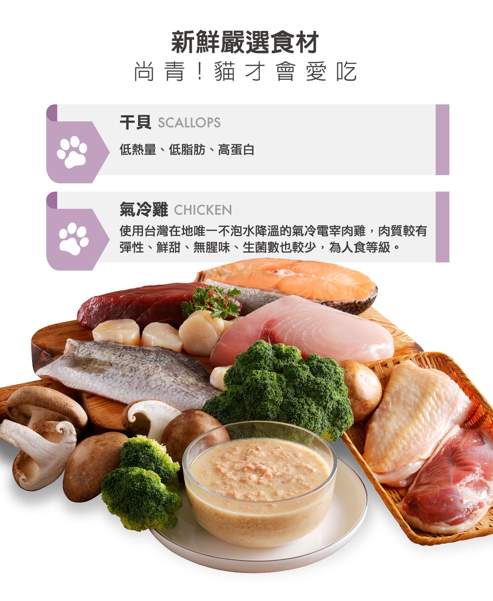 √ 市場首創高適口「粥」質地新食感 √ 添加「蛋殼膜」關節毛皮雙重保養 √ 95% 動物性蛋白質 √ 低磷低碳水!無穀!無人工膠!無防腐劑! √ 適用全年齡貓