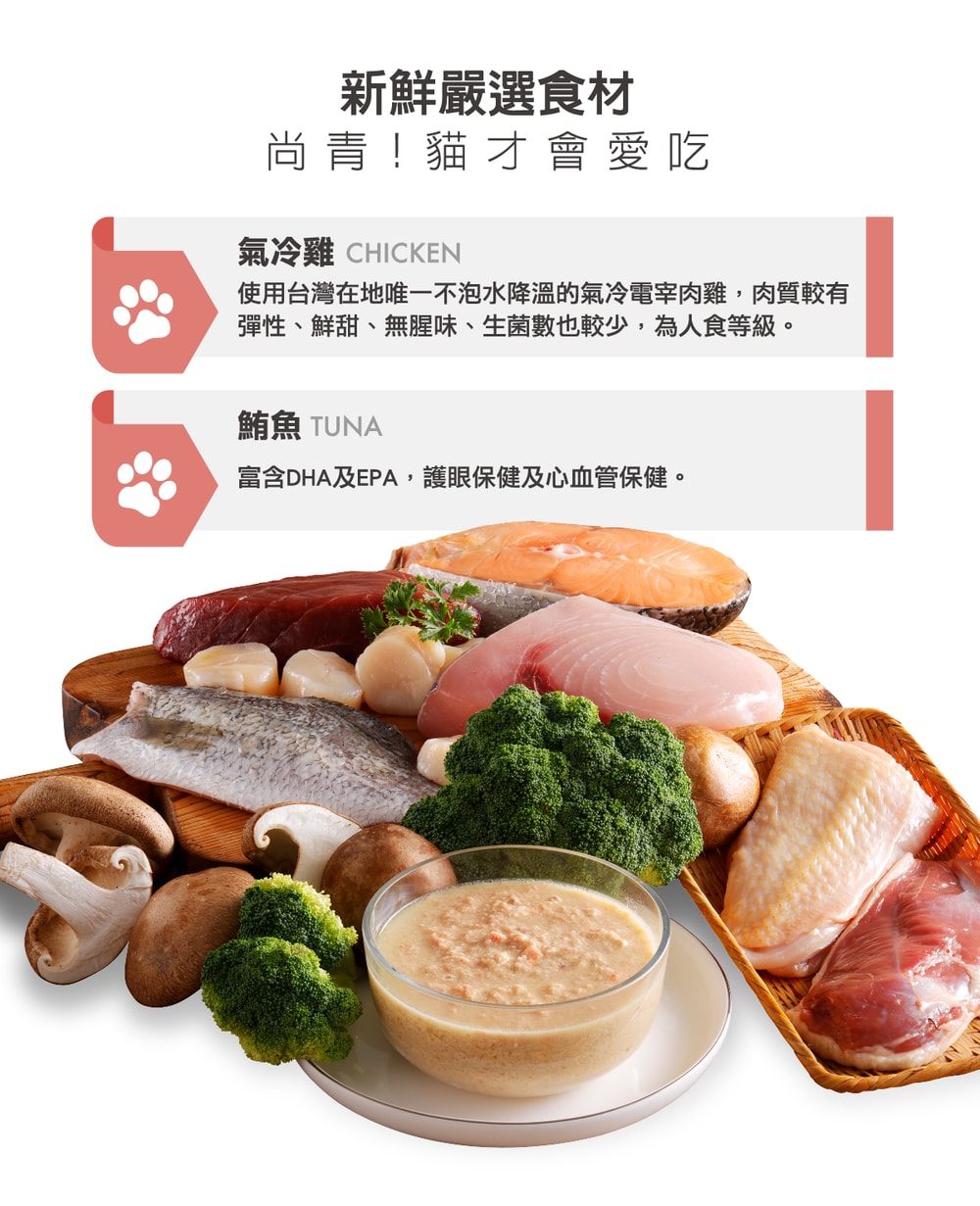 💥魚底喵首選! √ 市場首創高適口「粥」質地新食感 √ 添加「蛋殼膜」關節毛皮雙重保養 √ 95% 動物性蛋白質 √ 低磷低碳水!無穀!無人工膠!無防腐劑! √ 適用全年齡貓